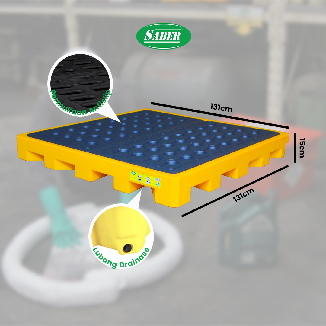 SABER Spill Deck merupakan platform penampung tumpahan dengan desain profil rendah (low profile) yang memudahkan proses pemuatan, pengisian, dan pengangkatan drum secara efisien. Meskipun kapasitasnya lebih kecil dibanding Spill Pallet, Spill Deck memiliki keunggulan modular design, memungkinkan beberapa deck disambungkan menjadi area penampungan lebih luas sesuai kebutuhan. Terbuat dari bahan tahan kimia dan kokoh, spill deck sangat ideal untuk area kerja dengan ruang terbatas, laboratorium, atau zona perawatan mesin yang membutuhkan perlindungan tumpahan tanpa mengganggu aktivitas operasional.